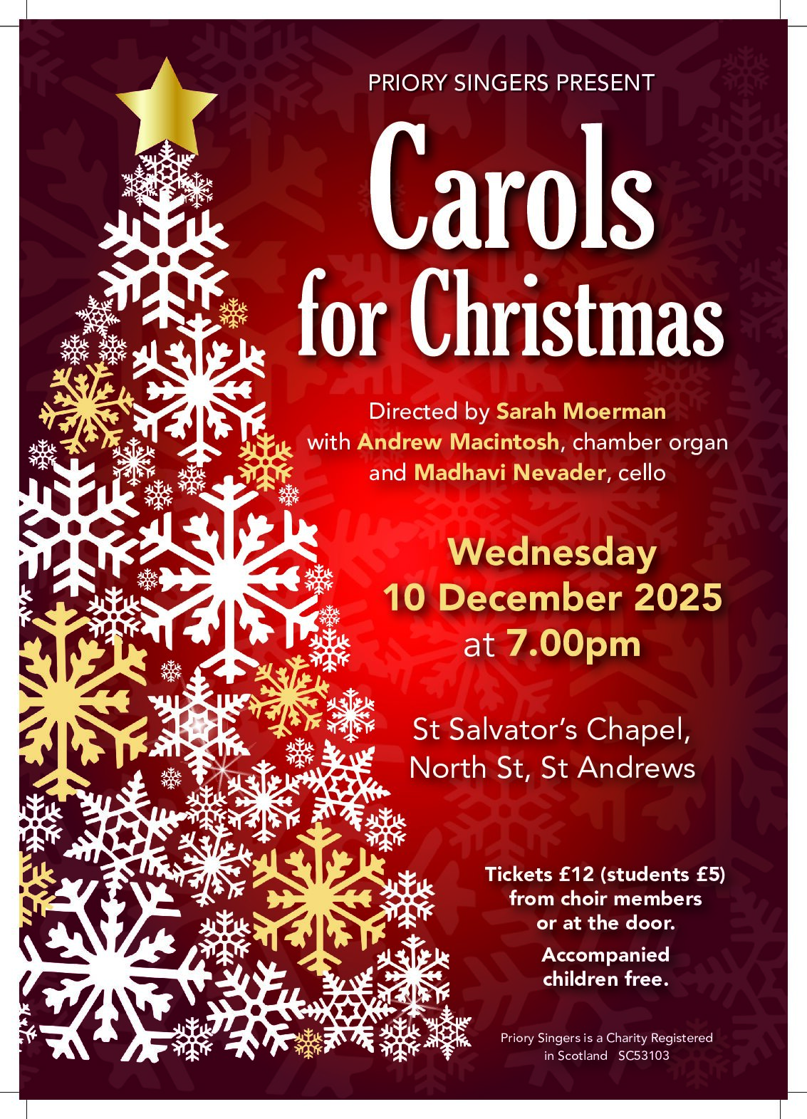 Priory Singers is a friendly and high-quality chamber choir based in the East Neuk of Fife. Comprising between twenty and thirty singers, we welcome choristers from East Fife and St Andrews. We perform three times a year and give lively and varied programmes ranging from early classical works to contemporary compositions.